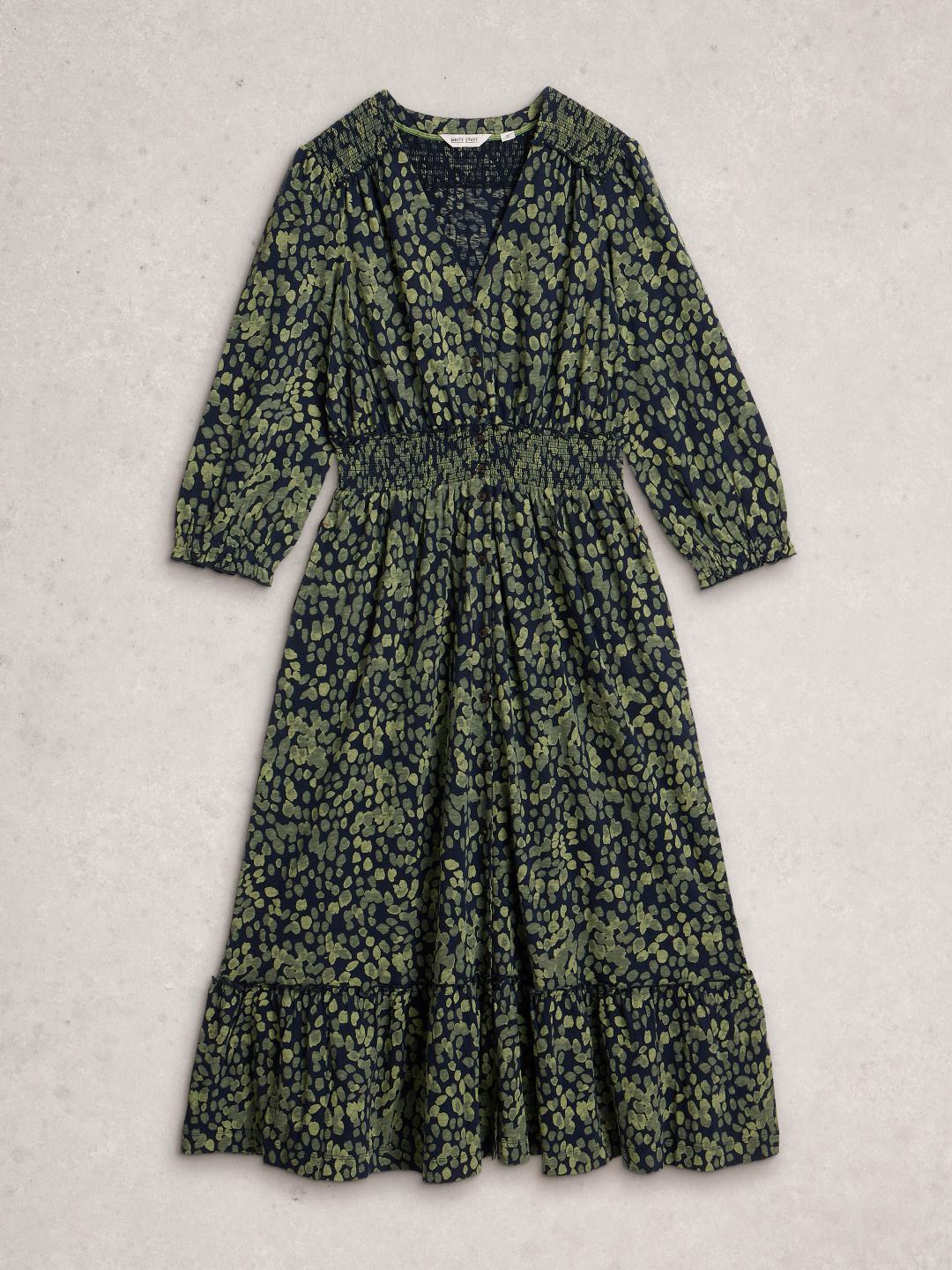 White Stuff JONIE SHIRRED DRESS GREEN PR