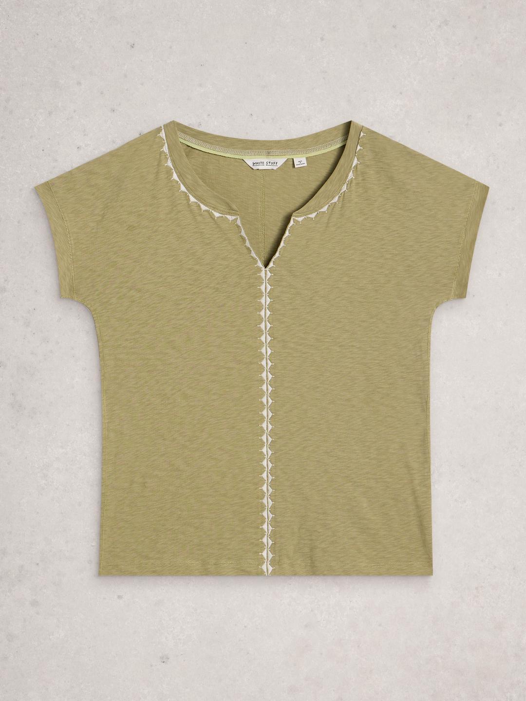 White Stuff NELLY PLAIN EMBROIDERED TEE GREEN MLT