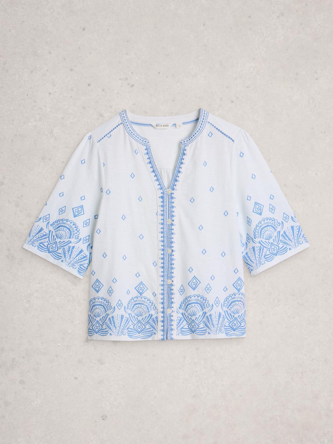 White Stuff LIZZIE BORDER EMBROIDERED TOP WHITE PR