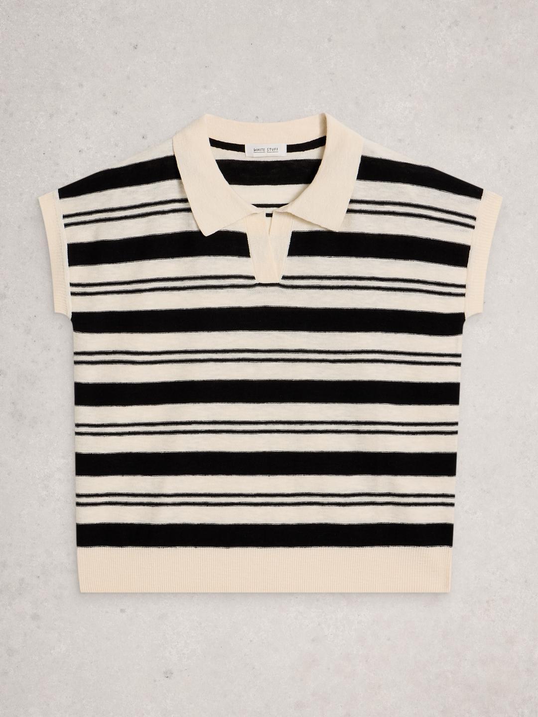 White Stuff GINNI STRIPE LINEN POLO TEE IVORY MLT